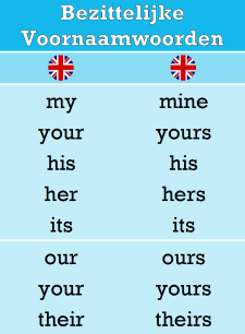 - Het rechter rijtje betekent dus ‘van mij / de mijne, van jou / de jouwe…‘
