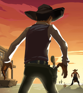 Van elk team komt er één speler naar voren, waar ze met de gezichten naar elkaar toe gaan staan als cowboys die hun pistool gaan trekken.