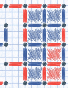 De spelleider tekent d.m.v. het zetten van (zwarte) stippen een raster van 4×4 of groter. Hoe groter het raster, hoe langer het spel. Zie de afbeelding hiernaast.